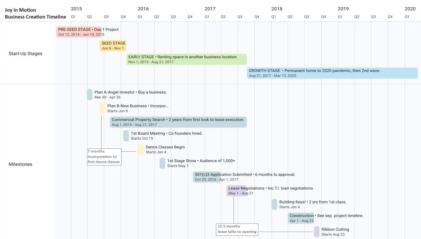 SEED STAGE - Incorporating as a business with an entity name until taking in our first dollar for dance classes took 5 MONTHS